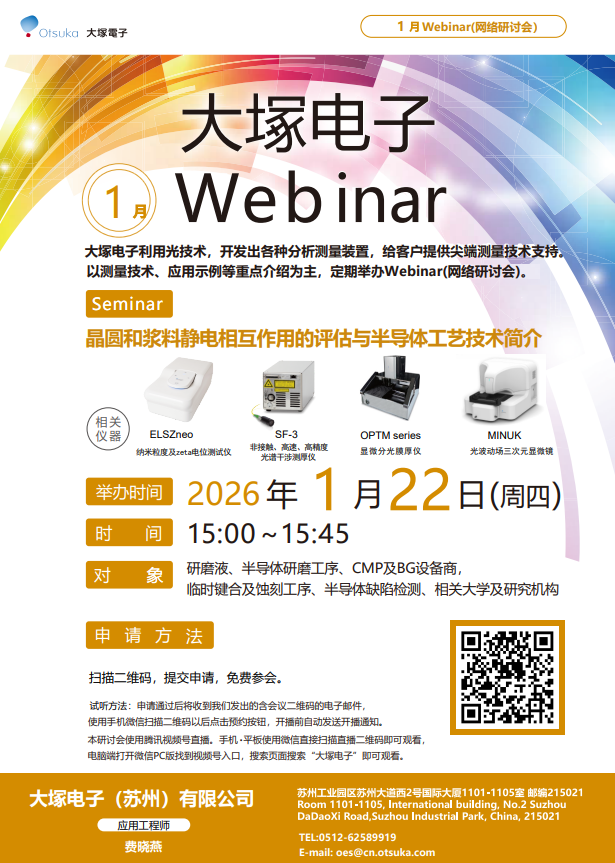 2025/10/23 15:00~16:00,蘇州線上講習(xí)會(huì),由日本粒徑測(cè)量專家講解的DLS測(cè)量方法技巧介紹,DLS測(cè)量和分析原理、樣品制備的注意點(diǎn)、測(cè)量·解析時(shí)的故障排除說(shuō)明。